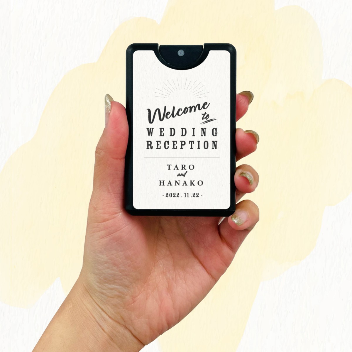 本キャンペーン賞品の「セミオーダーデザイン除菌スプレー」は、お好みのデザインテンプレ―トにお名前やお日付、会社名などをいれることができる、新しい生活様式に合わせた名入れアイテムです。